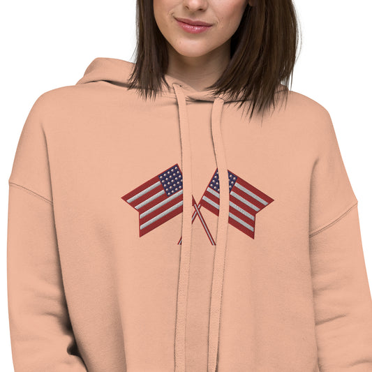 American Flag Embroidered Crop Hoodie